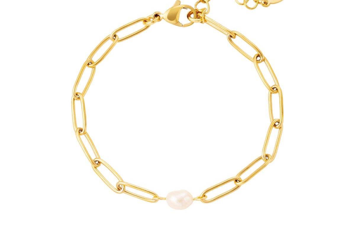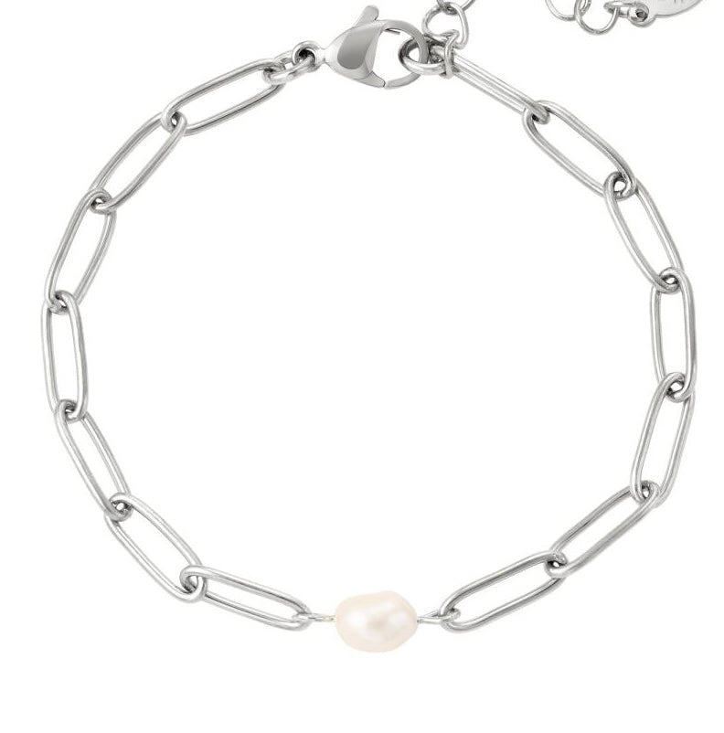 Alice Lænkearmbånd med en natur perle i midten - findes i sølv og guld