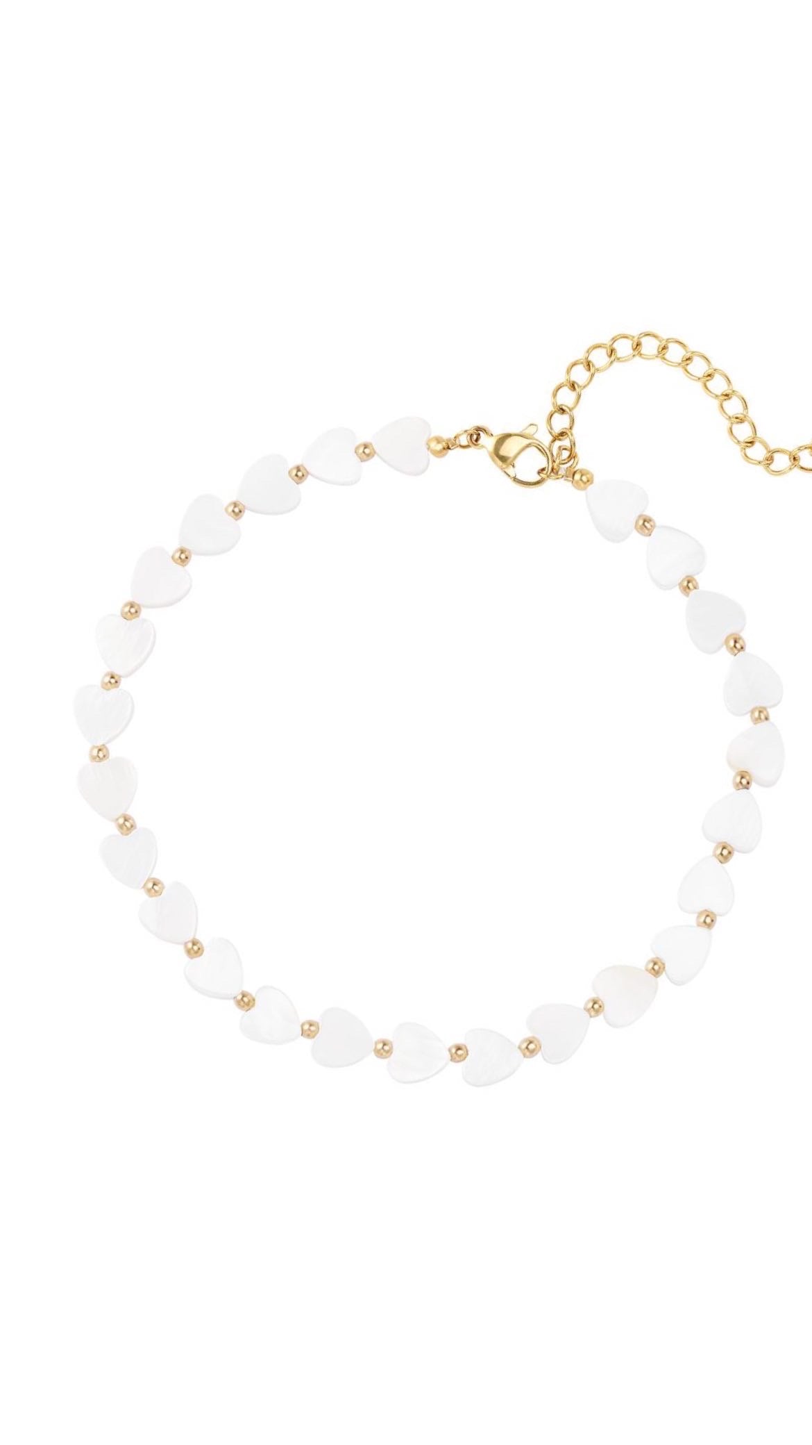 Pift dit sommer outfit op med denne skønne Ella ankelkæde fyldt med perle hjerter