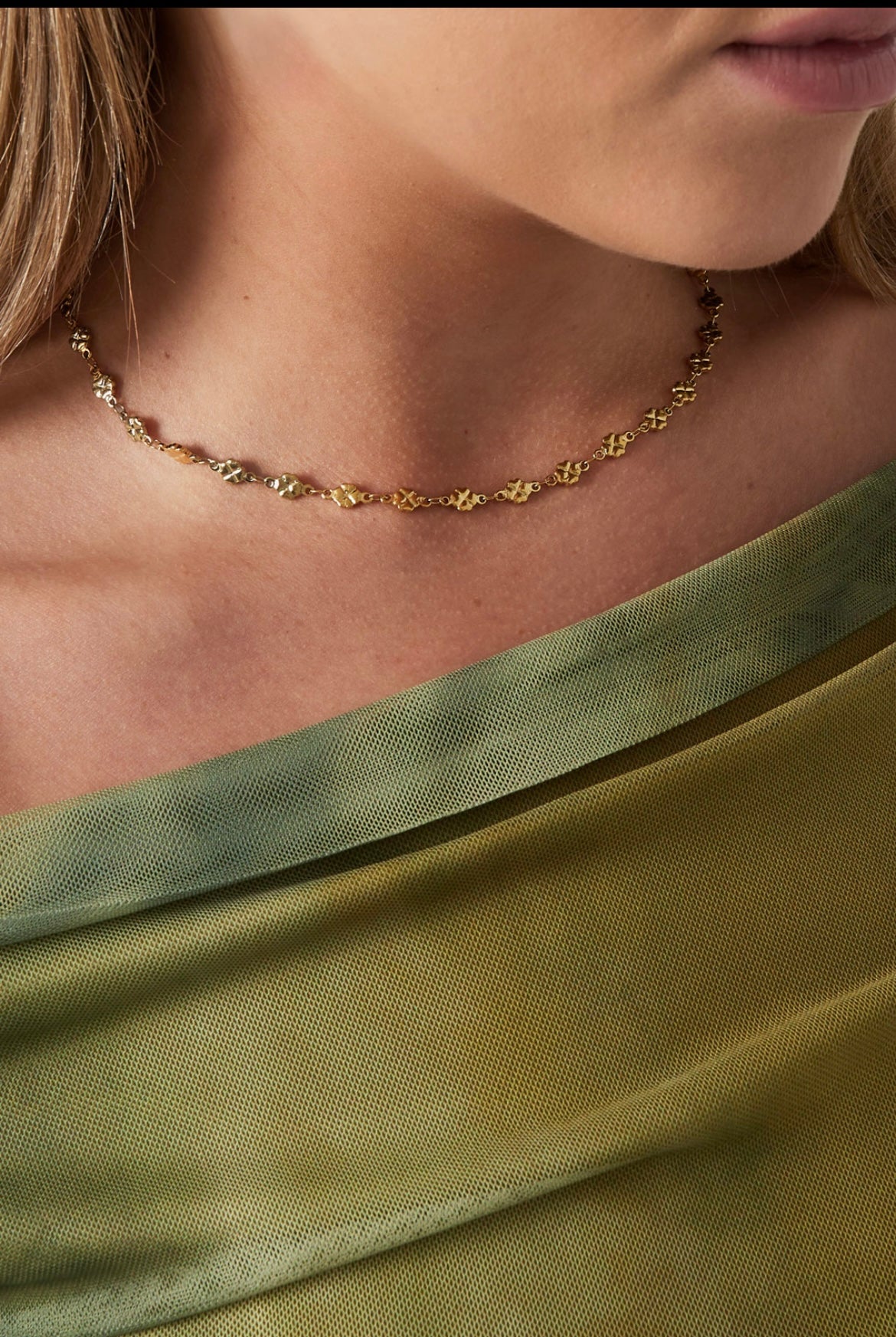 Fineste elegante halskæde med firkløver i guld