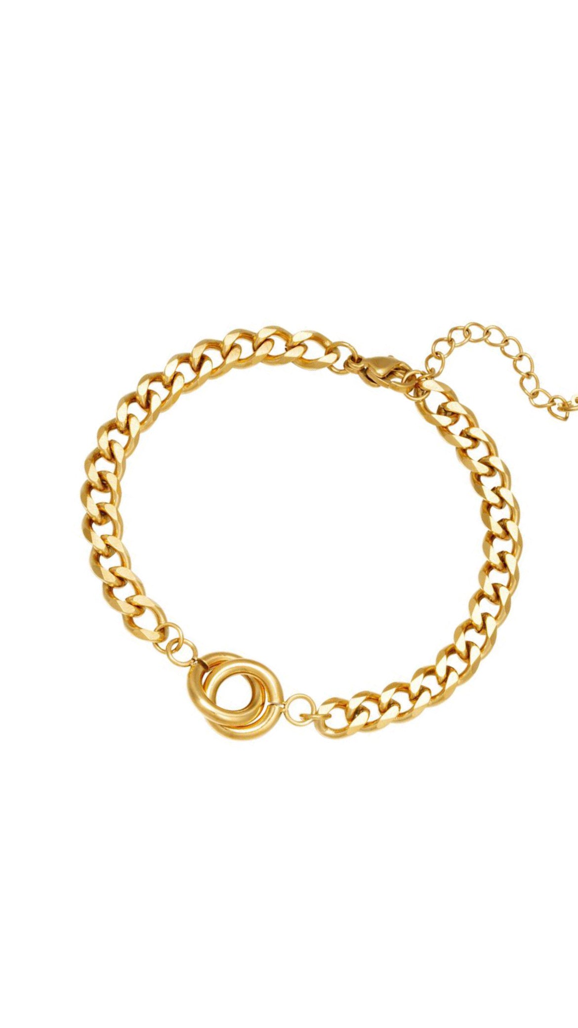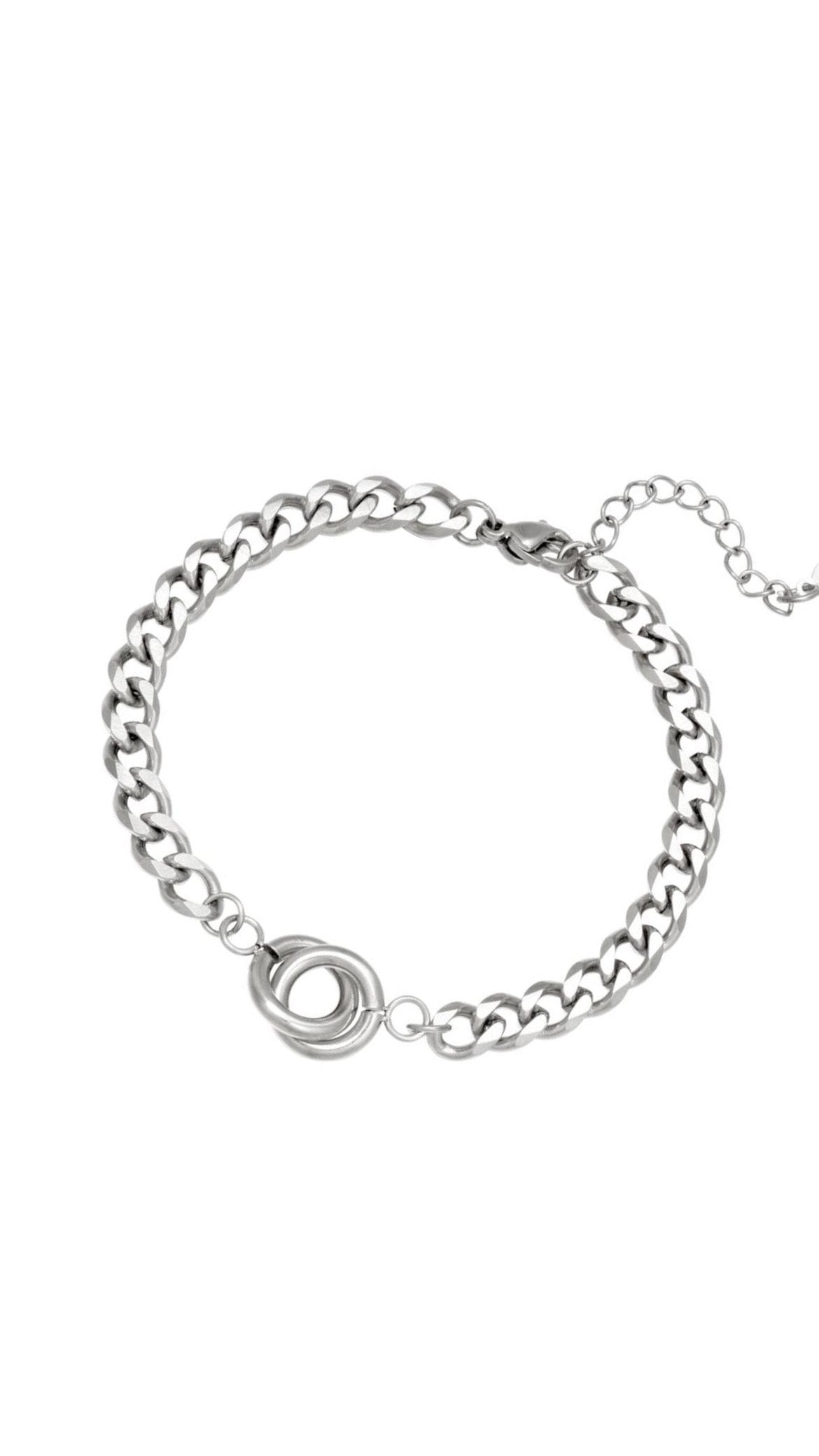 Kraftigere længe armbånd med fin detalje af to ringe der går ind i hinanden fortil