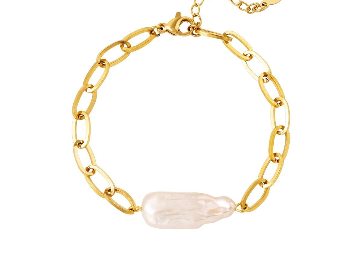 Er du til det feminine - men med kant er det her lænkearmbånd med en stor natur perle lige dig !