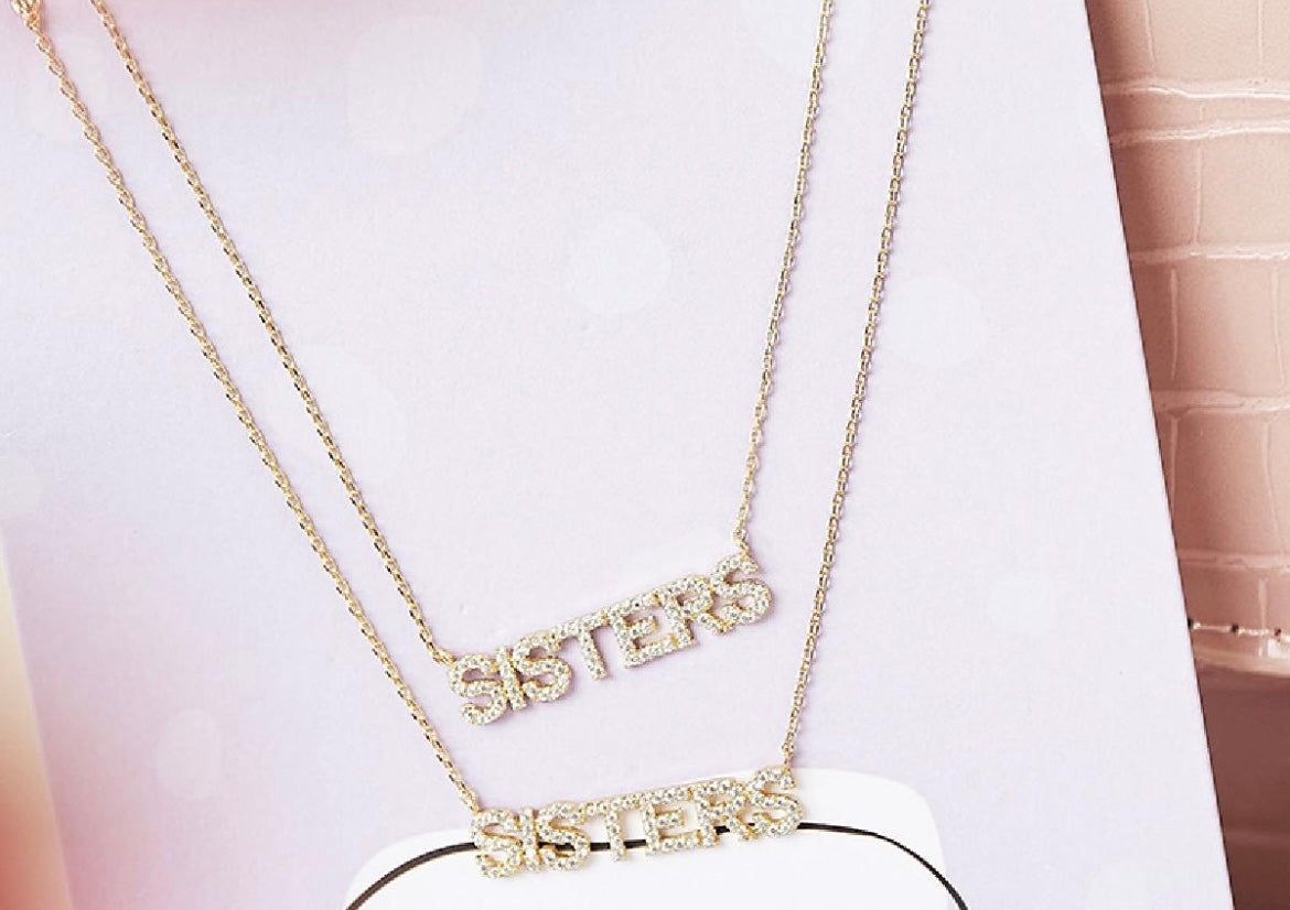 Smuk sød søster halskæde fyldt med zirkoner